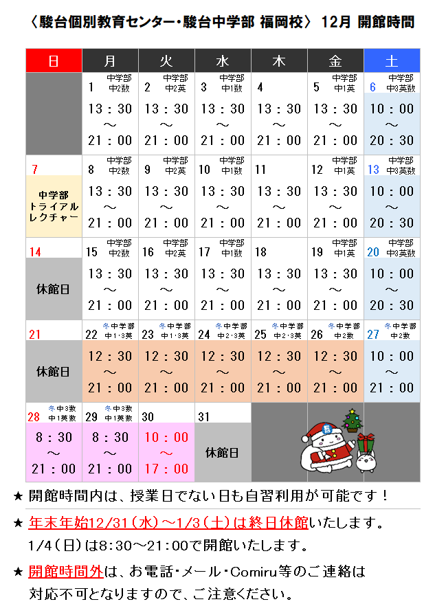 12月 開館カレンダー