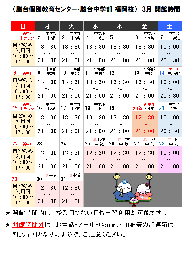 | 設備 | 自習スペース完備 |