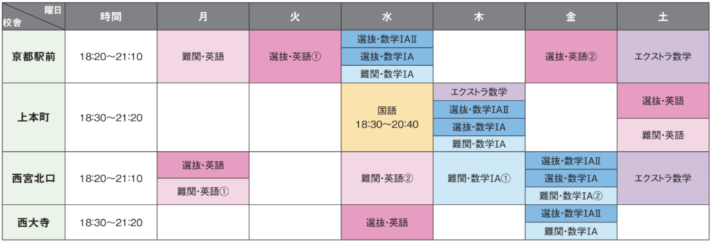 | 京都駅前校 | 木曜 | 18:40~20:50 |