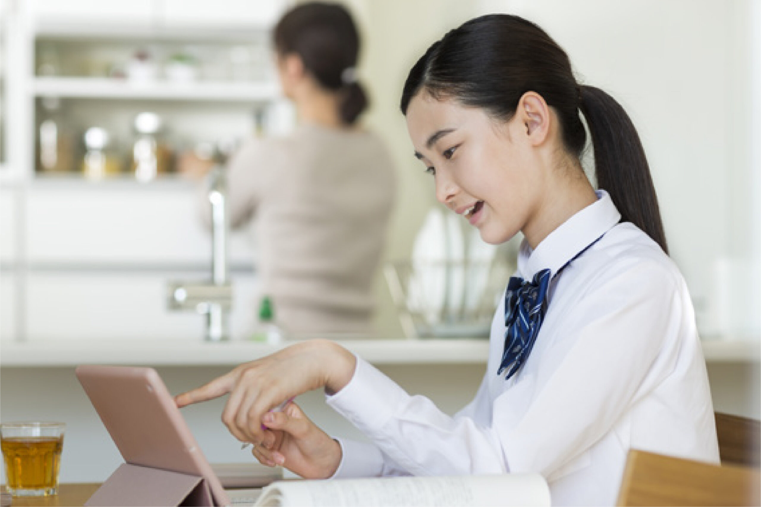 オンライン会議システムを使用した「オンライン授業」を実施しています。インターネット環境があれば、お持ちのタブレット端末・スマートフォン・パソコンを使用し、ご自宅での受講が可能です。