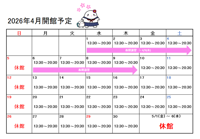 また3/25(水)~4/9(木)は春期講習期間になります。