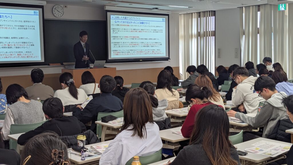 3月20日(金祝)に、新中学1年生~新中学3年生を対象に、中学生のための大学入試講演会『大学入試の基礎知識』を開催いたしました。