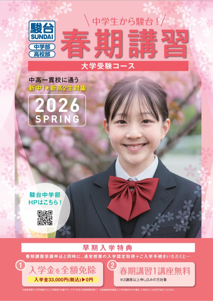 ここでは駿台中学部西大寺校にて実施される春期講習についてご案内いたします。