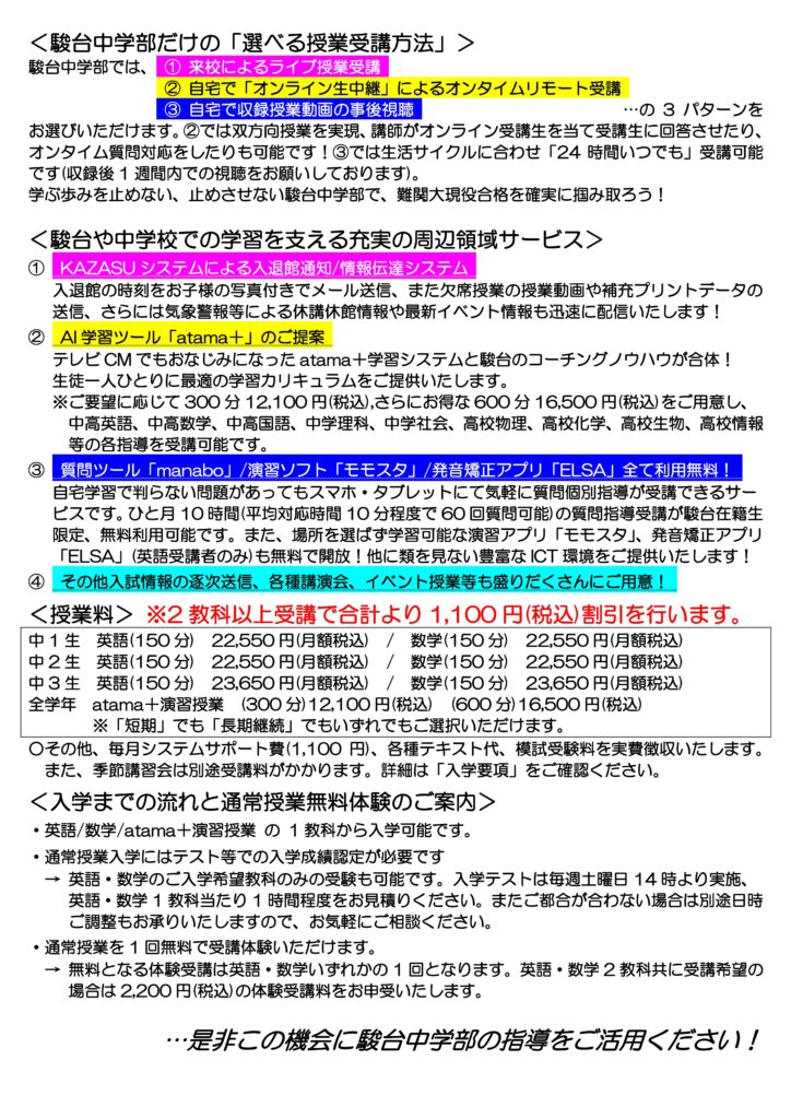 …是非この機会に駿台中学部の指導をご活用ください!