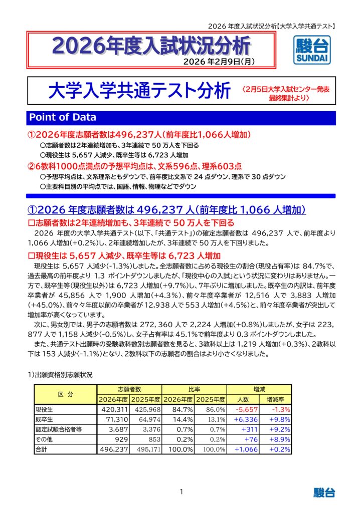 今週月曜日に今回の大学入学共通テストの最終分析がリリースされましたので、ご紹介いたします!