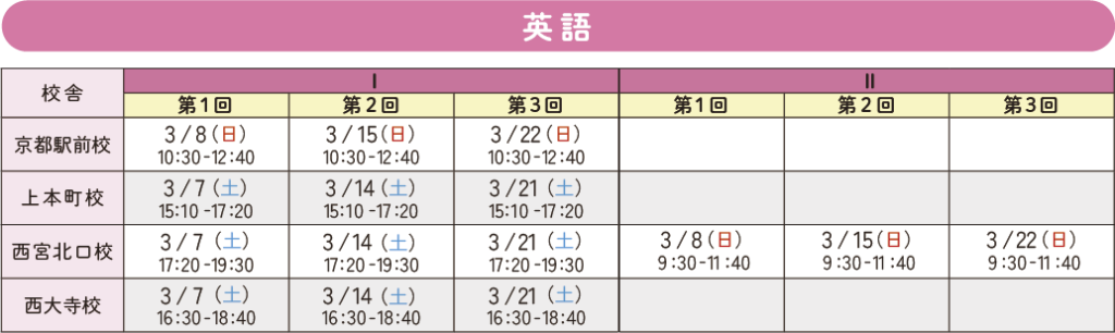 - 英語のみ・数学のみの受講も可能です。詳細は各校舎までお問い合わせください。